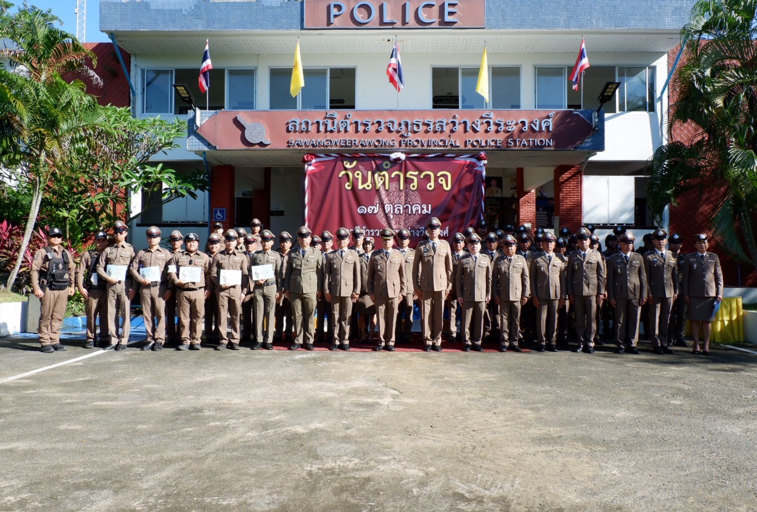 วันที่ 10 เม.ย. 2567 เวลา 08:00 น. พ.ต.อ.วรวิทย์ สีมาพล ผกก.สภ.สว่างวีระวงศ์ พ.ต.ท.ณฐกร นบนอบ รอง ผก