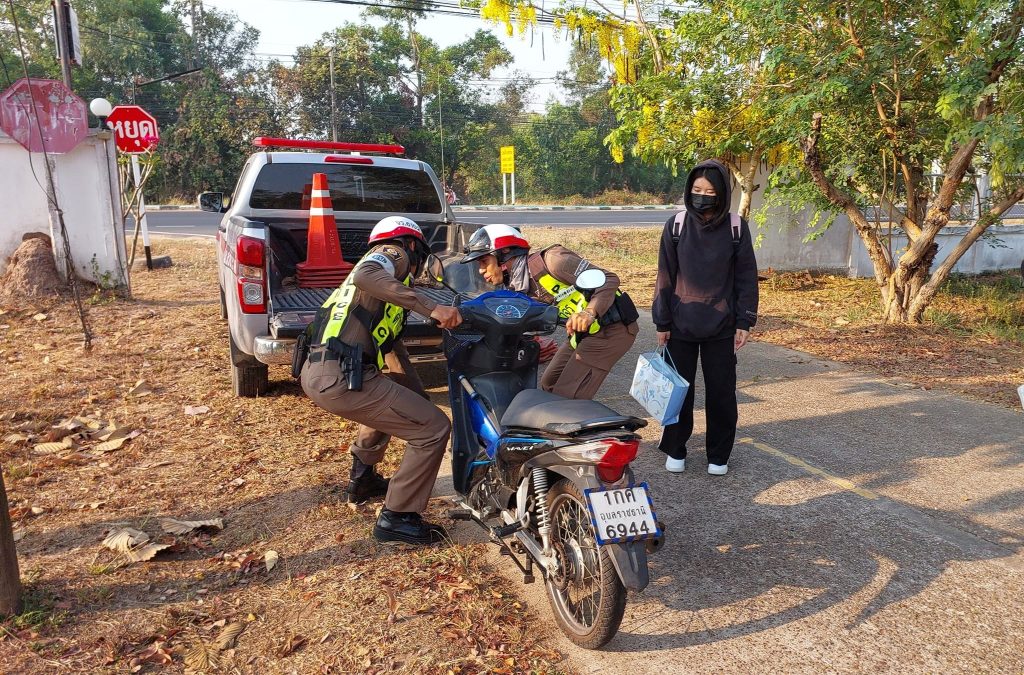 วันที่ 4 เม.ย.2567 เวลาประมาณ 07.30 น. ร.ต.ต.ธนากร ศรีใสคำ รอง สว.(ป) พร้อมด้วย จ.ส.ต.กิตตินันท์ มานุช ส.ต.อ.พงศภัค พวงแก้ว (เวร จร.) ได้ให้การช่วยเหลือ นางสาว พันธมน บุญเลิศ พร้อมเพื่อน เนื่องจากรถจักรยานยนต์ยางรั่ว จึงได้นำรถยรต์โล่ของทางราชการให้การช่วยเหลือโดยนำรถจักรยานยนต์ขึ้นรถยนต์โล่นำส่งร้านซ่อมบริเวณฝั่งตรงข้าม รร.บ้านสุขสมบูรณ์