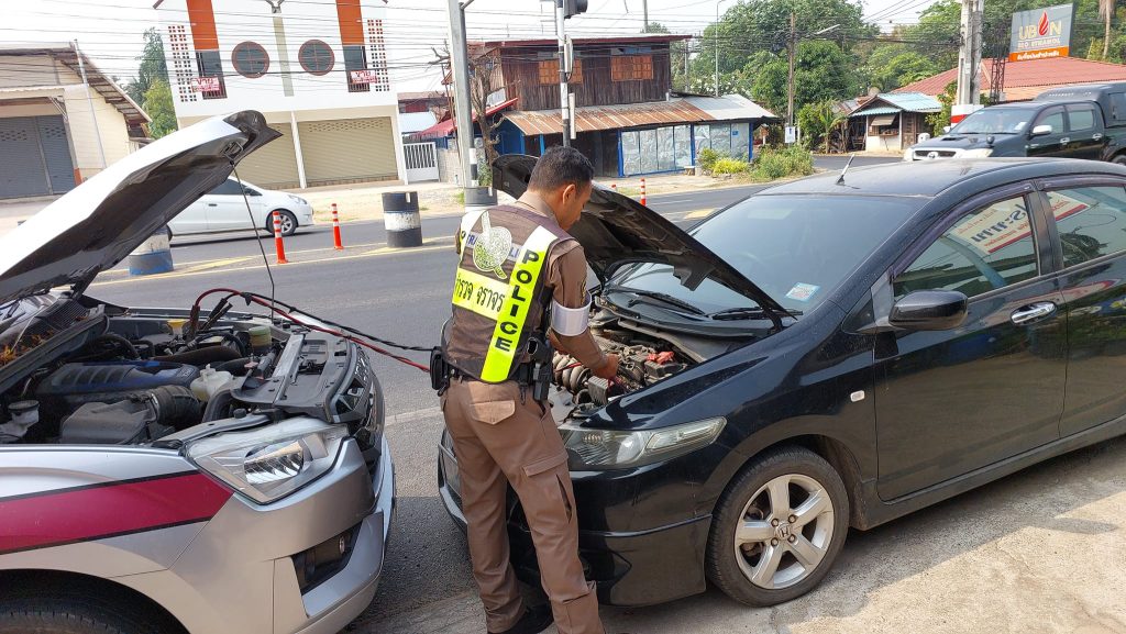 วันที่ 29 มี.ค. 2567 ร.ต.ต.ธนากร ศรีใสคำ รอง สว.(ป) พร้อมด้วย ส.ต.อ.พงศภัค พวงแก้ว (เวร จร.) ได้รับแจ้งจากศูนย์วิทยุสื่อสารว่ามีประชาชนต้องการความช่วยเหลือบริเวณปากทางเข้าบ้านคำโพธิ์ เนื่องจากแบตเตอรี่หมด จึงได้เดินทางไปให้การช่วยเหลือนาย พิเชษฐ์ บุตรชัย ผอ.รพ.สต.นาดี ต.นาดี อ.นาเยีย โดยช่วยพ่วงแบตเตอรี่ให้จึงสามารถเดินทางไปทำงานต่อได้อย่างปลอดภัย