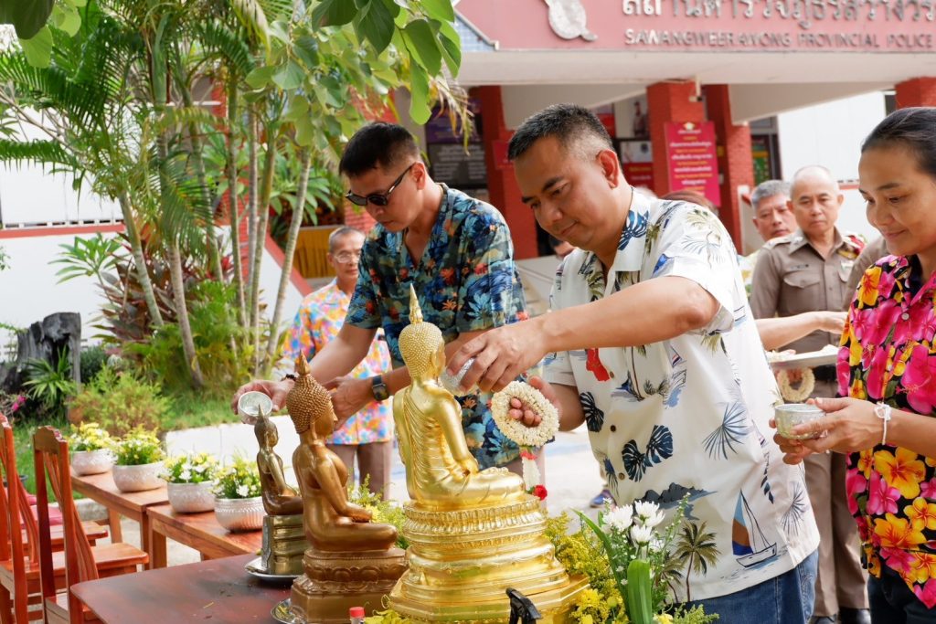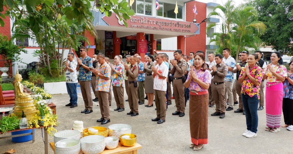 ร่วมพิธีไหว้ศาลพระภูมิ ศาลเจ้าที่ สิ่งศักดิ์สิทธิ์ประจำ สภ.สว่างวีระวงศ์ พร้อมร่วมสรงน้ำพระพุทธรูปประจำ สภ.สว่างวีระวงศ์ และรดน้ำขอพรผู้ใหญ่ เพื่อความเป็นสิริมงคล แก่ตนเองและครอบครัว เนื่องในเทศกาลสงกรานต์ พ.ศ.2567