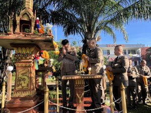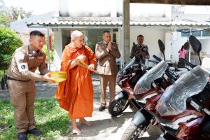 ร่วมกิจกรรม พิธีไหว้ศาล เวลา 07.20น. ณ บริเวณหน้าศาลพระภูมิ หน้าอาคาร สภ.สว่างวีนะวงศ์ และกิจกรรมพิธีเคารพธงชาติ อ่านพิธีสารผบ.ตร. กล่าวคำสัตจ์ปฏิญาณตน มอบประกาศนียบัตรข้าราชการตำรวจที่ปฏิบัติงานดีเด่นในแต่ละด้าน และ ทำบุญเลี้ยงพระเพื่อความเป็นสิริมงคล