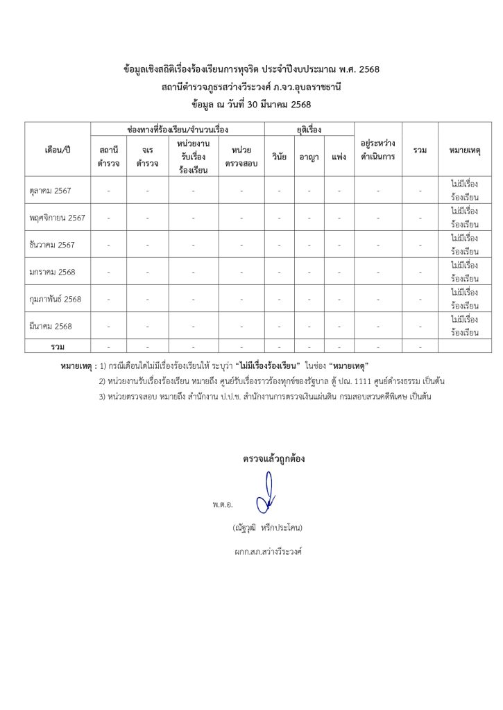 O17 ช่องทางการแจ้งเรื่องร้องเรียนการทุจริตและข้อมูลเชิงสถิติเรื่องร้องเรียนการทุจริต